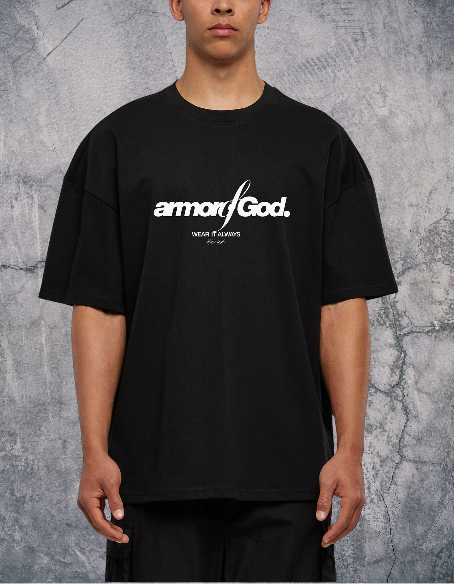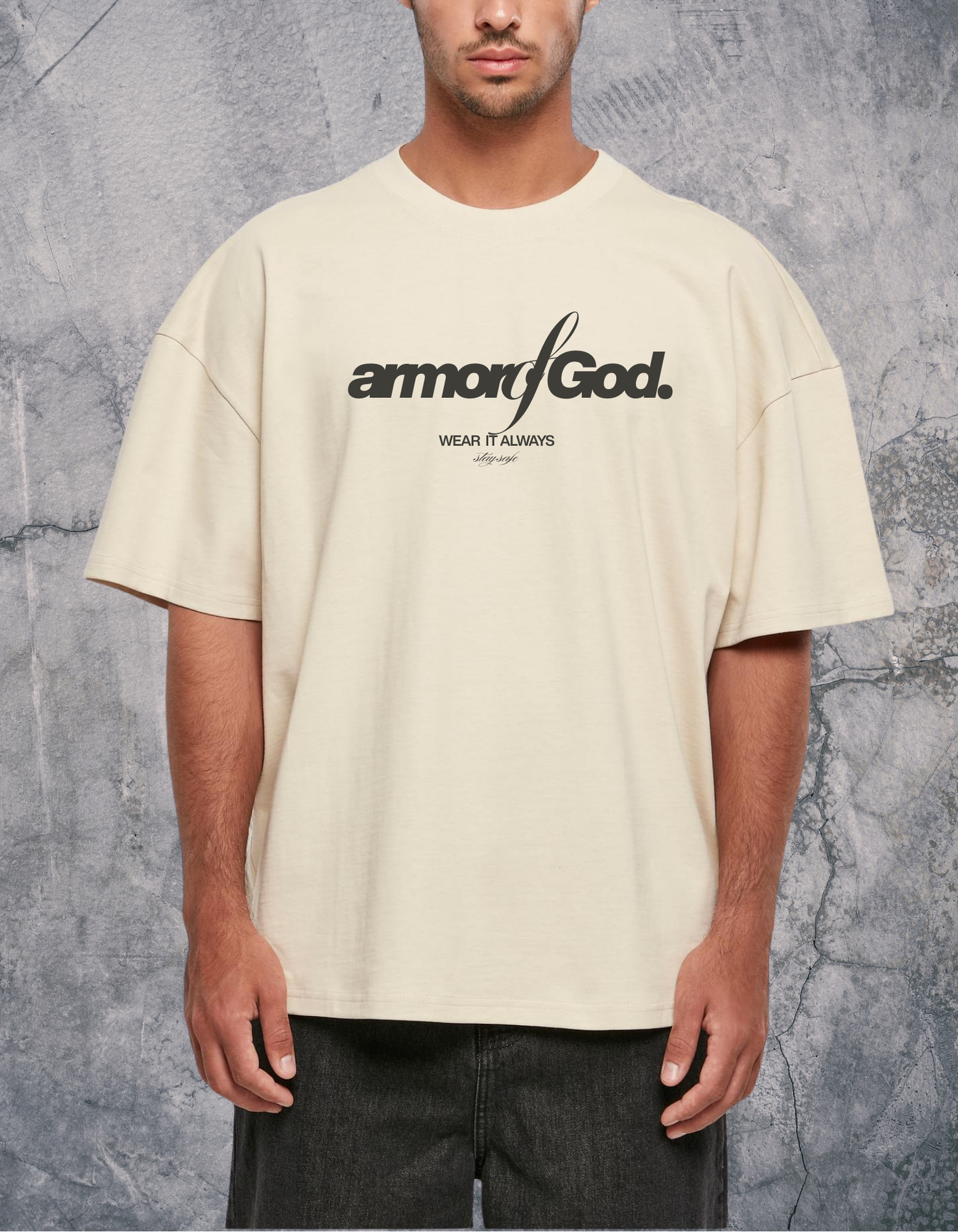 Koszulka męska „heavy huge” z nadrukiem z przodu Armor of God to połączenie pozytywnej energii, stylu i codziennego komfortu.