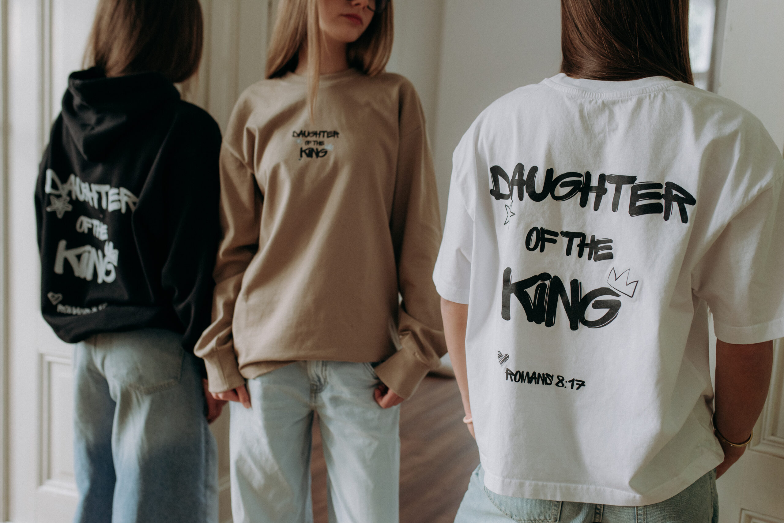 Koszulka Daughter of the King to połączenie wiary, stylu i codziennego komfortu. Inspirowana Słowem Bożym, stworzona na Chwałę Pana – przypomina kim jesteś, gdziekolwiek jesteś.