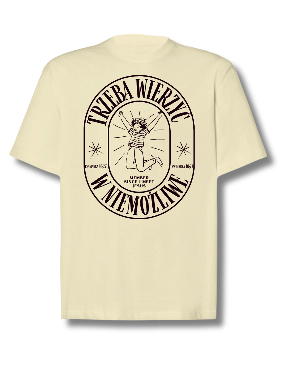 Ta koszulka to połączenie wiary, wygody i stylu. Jej klasyczny, oversize’owy krój sprawia, że doskonale pasuje do całorocznych, casualowych stylizacji. Świetnie wygląda solo, ale również fantastycznie komponuje się z innymi barwami i warstwami. Idealna do codziennych outfitów, total-looków, a także podczas uwielbiania i flagowania — wszędzie tam, gdzie chcesz wyrazić swoją wiarę i wolność w Chrystusie.